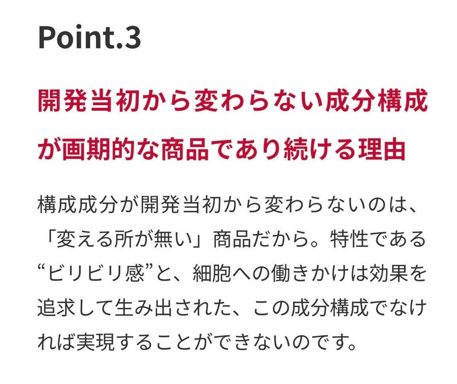 肌の調子が悪いほどチャージ力が働くという特性から、同じ成分にもかかわらず、状態によって刺激の強さが変化。肌状態のバロメーターとしても愛用されています。